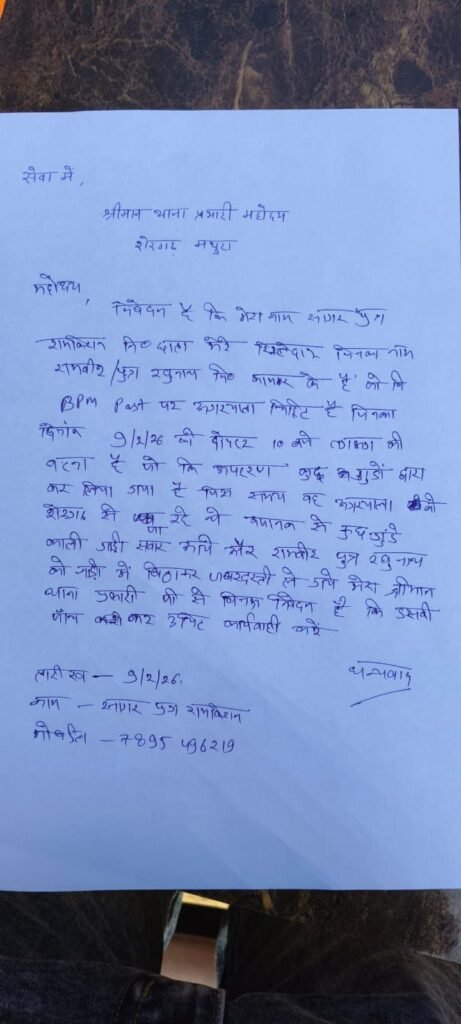 मथुरा।थाना शेरगढ़ क्षेत्र में सोमवार सुबह उस समय हड़कंप मच गया, जब पोस्ट ऑफिस में तैनात एक कर्मचारी का रास्ते से कथित रूप से अपहरण कर लिया गया। घटना के बाद से पुलिस महकमे में हलचल तेज हो गई है और मामले की सूचना उच्च अधिकारियों तक पहुंचा दी गई है।जानकारी के अनुसार, कोसीकला थाना क्षेत्र के गांव कामर निवासी रामवीर पुत्र रघुनाथ शेरगढ़ के गांव अगरयाला स्थित पोस्ट ऑफिस में शाखा डाकपाल के पद पर तैनात हैं। बताया जा रहा है कि वह प्रतिदिन की तरह सुबह करीब 10 बजे अपने गांव कामर से ड्यूटी के लिए अगरयाला जा रहे थे। इसी दौरान शेरगढ़-अगरयाला मार्ग पर गाड़ी सवार अज्ञात लोगों ने उनकी मोटरसाइकिल रोककर उन्हें जबरन खींच लिया और अपने साथ ले गए।घटना की जानकारी मिलते ही परिजनों में दहशत फैल गई। परिजनों ने तुरंत थाना शेरगढ़ पुलिस को लिखित सूचना दी। सूचना मिलते ही पुलिस हरकत में आई और युवक की तलाश में सघन अभियान शुरू कर दिया गया है। आसपास के क्षेत्रों में नाकाबंदी कर संदिग्ध वाहनों की चेकिंग की जा रही है।दिनदहाड़े हुई इस वारदात से क्षेत्र में भय का माहौल है। परिजन और रिश्तेदार रामवीर की सकुशल वापसी की प्रार्थना कर रहे हैं। पुलिस का कहना है कि मामले की गंभीरता से जांच की जा रही है और जल्द ही घटना का खुलासा करने का प्रयास किया जा रहा है।