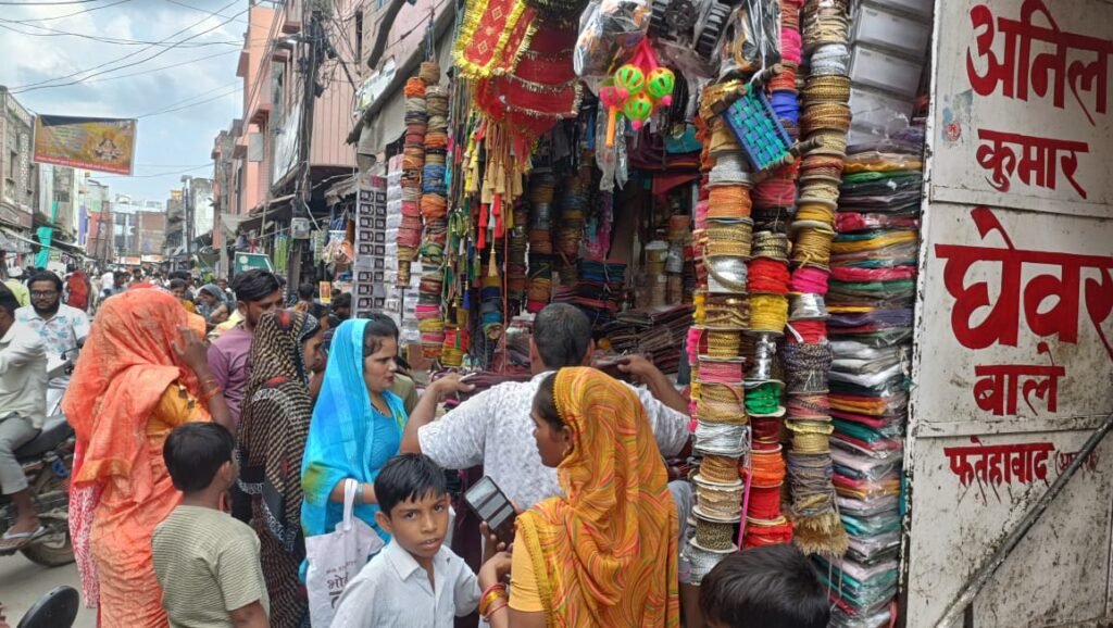 पूजन की थालियां इस बार विशेष आकर्षण का केंद्र बनी हुई हैं, जिनकी कीमत 200 से 500 रुपये तक है। वहीं महिलाएं साड़ियों के अनुरूप मैचिंग चूड़ियां और सौंदर्य प्रसाधन की खरीदारी में भी जुटी नजर आईं।