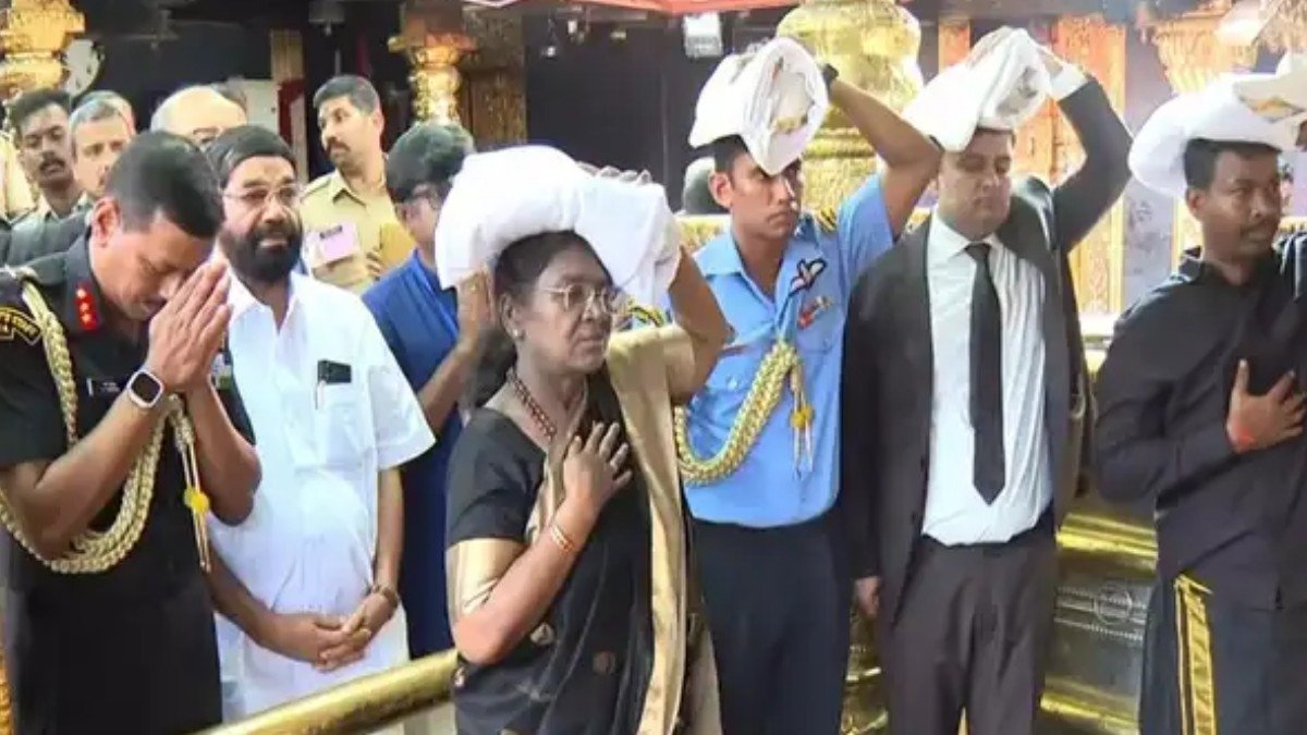 केरल: भारत की राष्ट्रपति द्रौपदी मुर्मू अपनी चार दिन की केरल यात्रा पर हैं। उन्होंने आज सबरीमाला स्थित भगवान अयप्पा मंदिर के दर्शन किए। इस दौरान उन्होंने अपने सिर पर एक पोटली रखी थी, जिसे उसे इरुमुडी कहा जाता है।