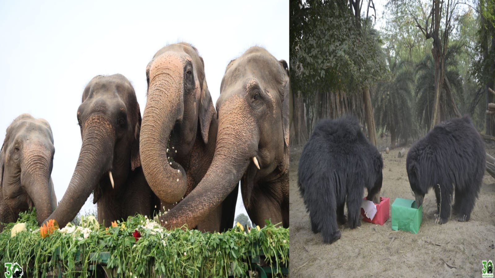 हाथी संरक्षण एवं देखभाल केंद्र में, माया, फूलकली, एम्मा, तारा और सूरज हाथियों ने शाम की सैर के दौरान क्रिसमस के जश्न में भाग लिया। रंग-बिरंगे फलों की दावत और सावधानीपूर्वक लपेटे गए सरप्राइज बॉक्स तैयार किए गए, जिनमें पौष्टिक पसंदीदा खाद्य पदार्थ भरे गए थे, जिससे हाथियों को बेहद खुशी मिली। क्रिसमस हाथी अस्पताल परिसर में भी मनाया गया, जहाँ हथिनी बानी को क्रिसमस के लिए विशेष उपहार दिए गए, जिसका उसने बड़े उत्साह से आनंद लिया। लपेटे हुए सरप्राइज बॉक्स, सजी हुई फलों की थालियाँ और सोच-समझकर तैयार किए गए उपहारों ने यह सुनिश्चित किया कि जश्न मनोरंजक और हाथियों के कल्याण पर केंद्रित रहे।