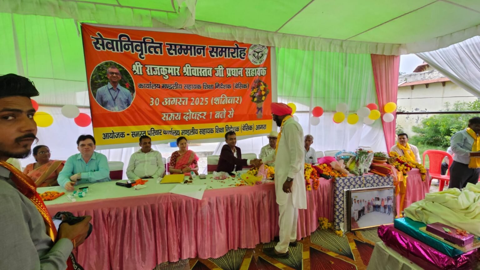 आगरा।  शनिवार 30 अगस्त को आगरा कार्यालय मंडलीय सहायक शिक्षा निदेशक बेसिक के सर्व लोकप्रिय शिक्षकों के हितैषी और अपने कार्यालय में बेहतरीन काम करने वाले श्री राजकुमार श्रीवास्तव जी प्रधान सहायक सेवानिवृत्त हो गए है,जीवन के इस नए अध्याय में आपको शांति, आनंद और उत्साह का उत्तम संतुलन मिले, इसकी कामना करते हुए आपकी सेवानिवृत्ति यात्रा के अनगिनत अवसरों व आपके भविष्य में खुशियाँ और संतुष्टि की कामना करते आपकी सेवानिवृत्ति पर बधाई दी।