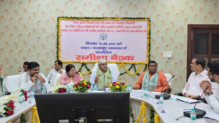 मथुरा।उत्तर प्रदेश विधान सभा की स्थानीय निकायों के लेखा परीक्षा प्रतिवेदनों की जांच संबंधी समिति (2024-25) की प्रथम उप समिति की समीक्षा बैठक आज सम्पन्न हुई। बैठक की अध्यक्षता समिति के सभापति माननीय मनीष असीजा ने की। बैठक में समिति के सदस्य श्रीमती सरिता भदौरिया, डॉ. डीसी वर्मा, श्री गुरुप्रसाद मौर्य, श्री गौरव कुमार, श्री विनोद चतुर्वेदी, श्री किरत सिंह व श्री संग्राम सिंह सहित जनपद स्तरीय अधिकारी उपस्थित रहे।
