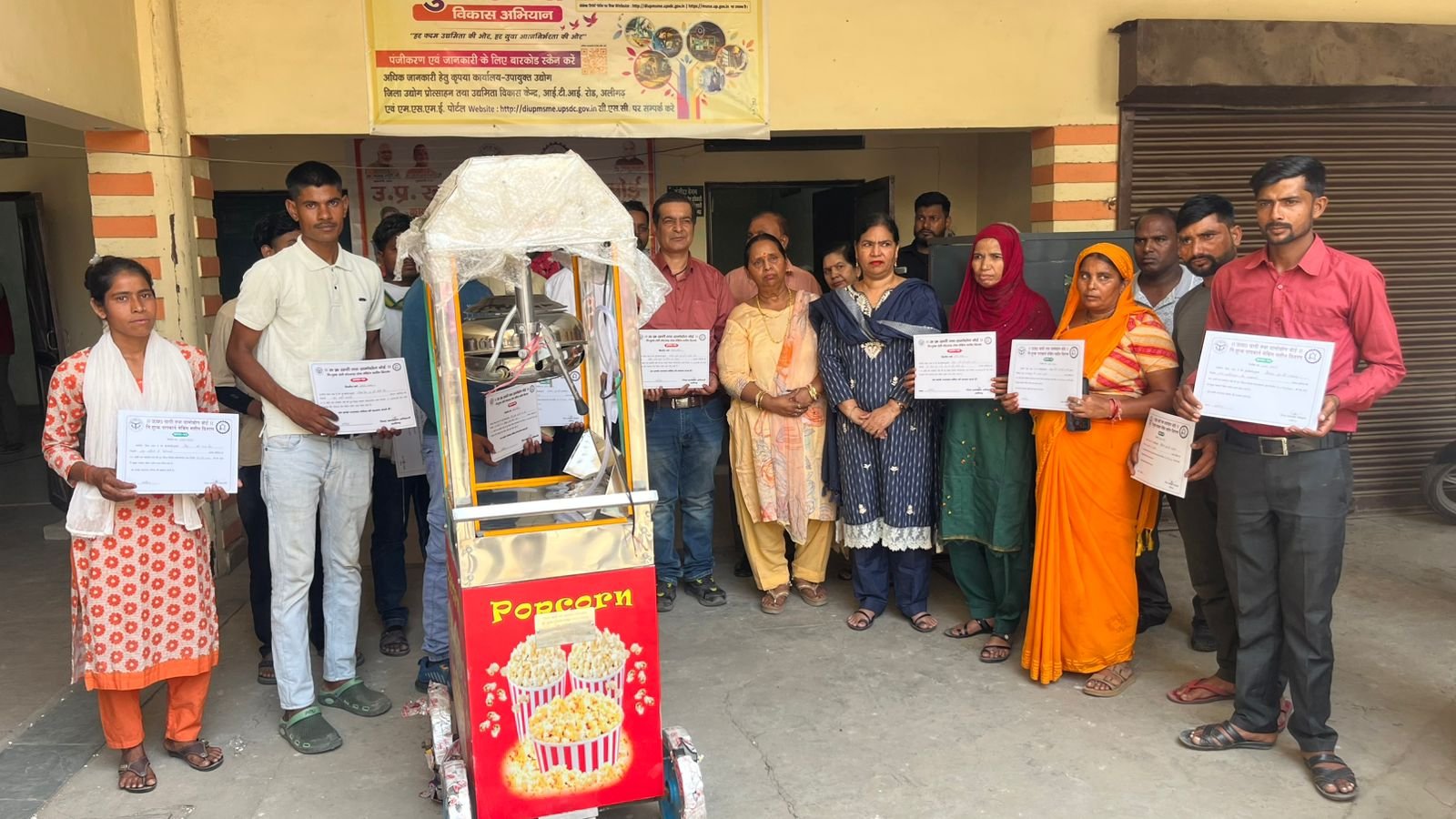इस दौरान दोना मेकिंग मशीन प्राप्त करने वालों में अंकित कुमार, अनिल गौतम, संतोष कुमार, सद्दाम खान, नीरज कुमार, नरेश कुमार शर्मा, सौरभ सिंह, श्रीमती निशा, श्रीमती साधना देवी एवं आकाश कुमार शामिल रहे। वहीं पॉपकॉर्न मशीन के लाभार्थियों में सचिन कुमार, भूपेन्द्र कुमार, कु. रेनू, मुनेन्द्र कुमार, आजाद, कु. अंशू, मछला देवी, छोटेलाल, हेमपाल एवं रोहदेश को लाभान्वित किया गया।