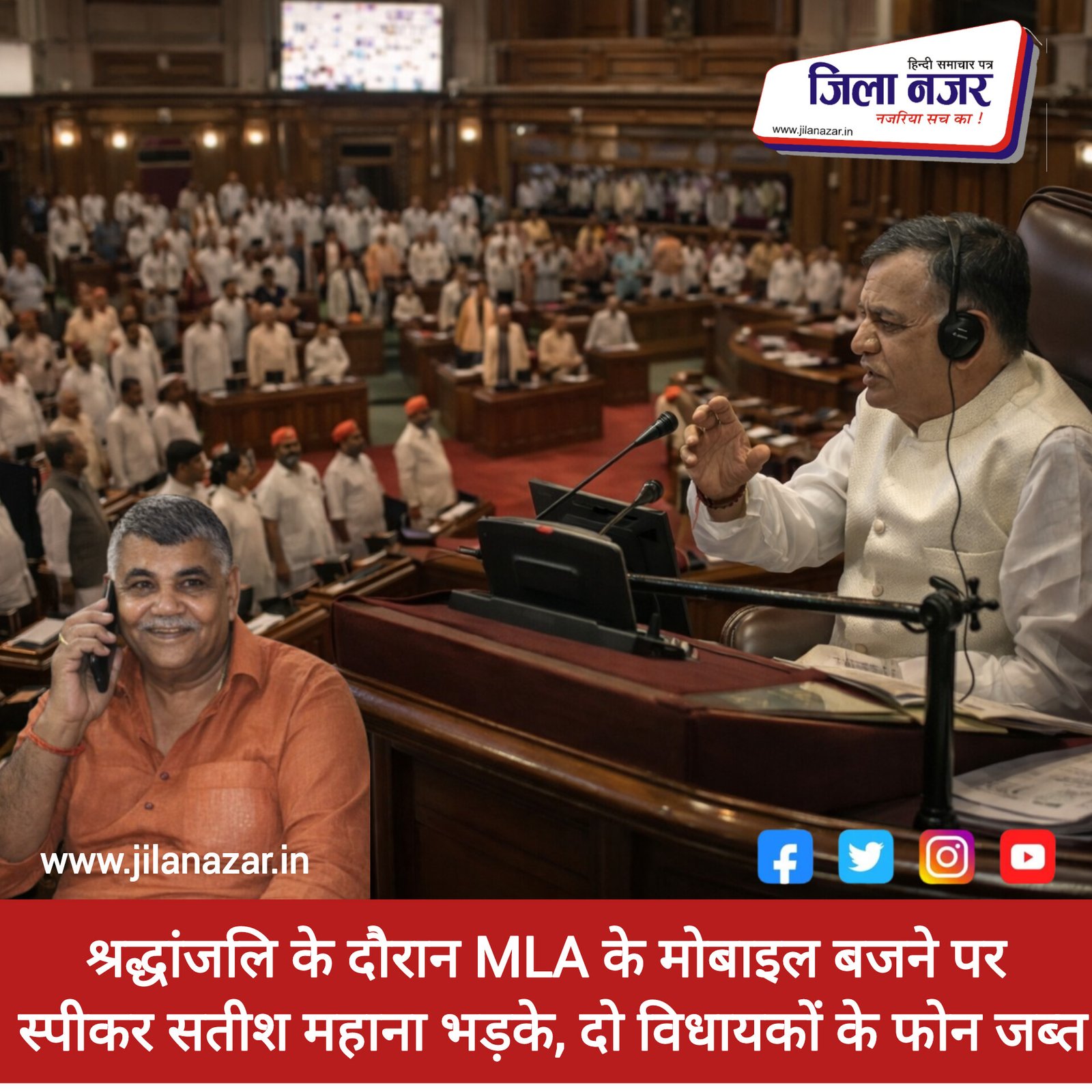 लखनऊ|जिला नजर।  उत्तर प्रदेश विधानमंडल के बजट सत्र के दूसरे दिन एक असामान्य घटना घटी जब दिवंगत विधायकों को श्रद्धांजलि दी जा रही थी। इस दौरान दो विधायकों के मोबाइल फोन बज उठे, जिस पर स्पीकर सतीश महाना बेहद नाराज हो गए। उन्होंने तुरंत सुरक्षा कर्मियों को बुलाकर दोनों विधायकों के फोन जब्त करवा लिए। इस घटना ने सदन की गरिमा और अनुशासन पर सवाल खड़े कर दिए हैं।