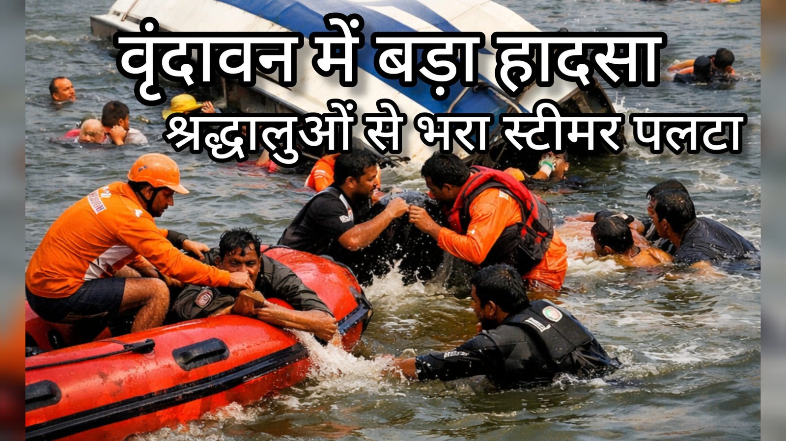 वृंदावन (मथुरा)।उत्तर प्रदेश के मथुरा जिले के वृंदावन में शुक्रवार दोपहर एक बड़ा हादसा हो गया, जब यमुना नदी में पर्यटकों से भरा एक स्टीमर पलट गया। इस दुर्घटना में अब तक 10 पर्यटकों की डूबने से मौत की पुष्टि हुई है, जबकि कई अन्य लोगों को सुरक्षित बाहर निकाल लिया गया है।प्रशासन के अनुसार, स्टीमर में सवार सभी पर्यटक पंजाब से घूमने आए थे।