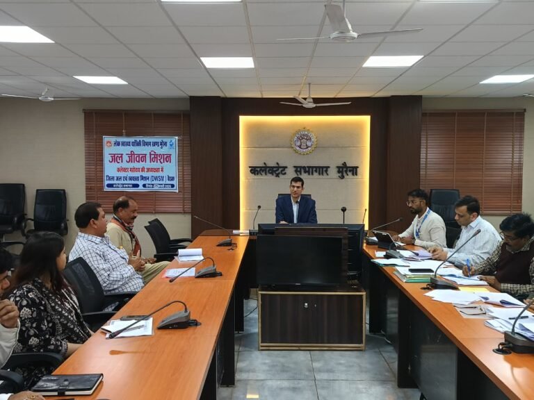 मुरैना: कलेक्टर श्री लोकेश कुमार जांगिड़ की अध्यक्षता में कलेक्ट्रेट सभाकक्ष में जल जीवन मिशन (JJM) के अंतर्गत संचालित नल-जल योजनाओं की जिला स्तरीय समीक्षा बैठक आयोजित की गई। बैठक में योजनाओं की भौतिक एवं वित्तीय प्रगति, स्कीम कम्प्लीशन, हैंडओवर स्थिति, एफएचटीसी (Functional Household Tap Connection) लक्ष्य, लंबित कार्यों, भुगतान प्रकरणों तथा फील्ड स्तर की समस्याओं की विस्तार से समीक्षा हुई।
