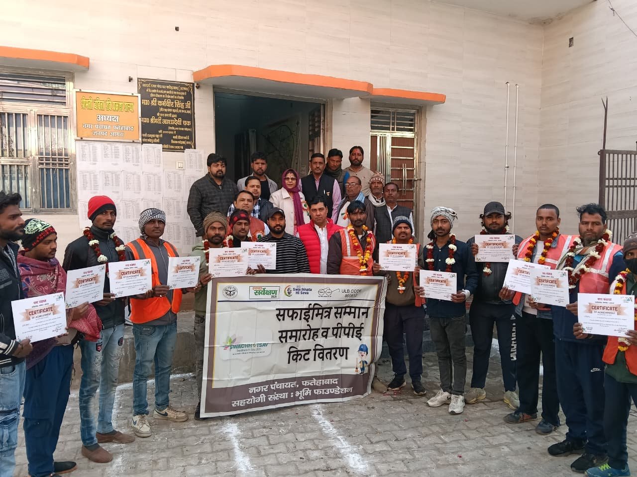 इस अवसर पर अध्यक्ष प्रतिनिधि रवि प्रकाश शल्या द्वारा कस्बा में सराहनीय सफाई कार्य करने वाले सफाई नायक और सफाई कर्मचारियों का शाल उड़ाकर और प्रशांति पत्र देकर सम्मान किया गया।