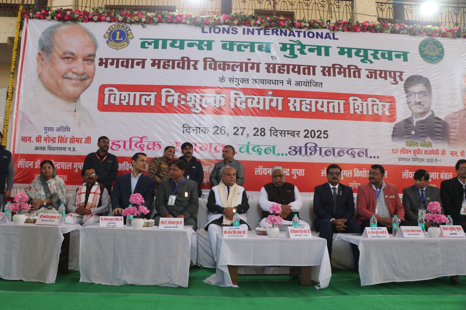 मुरैना/मप्र: मध्यप्रदेश विधानसभा अध्यक्ष नरेन्द्र सिंह तोमर ने कहा है कि लायंस क्लब मुरैना मयूरवन के सहयोग से तथा भगवान महावीर विकलांग सहायता समिति, जयपुर के तत्वावधान में आयोजित तीन दिवसीय निःशुल्क दिव्यांग सहायता शिविर उन दिव्यांगजनों के लिए वरदान सिद्ध हो रहा है, जो दिव्यांगता के कारण चलने-फिरने में असमर्थ थे। उन्होंने यह विचार पंचायती धर्मशाला में आयोजित कार्यक्रम को संबोधित करते हुए व्यक्त किए।
