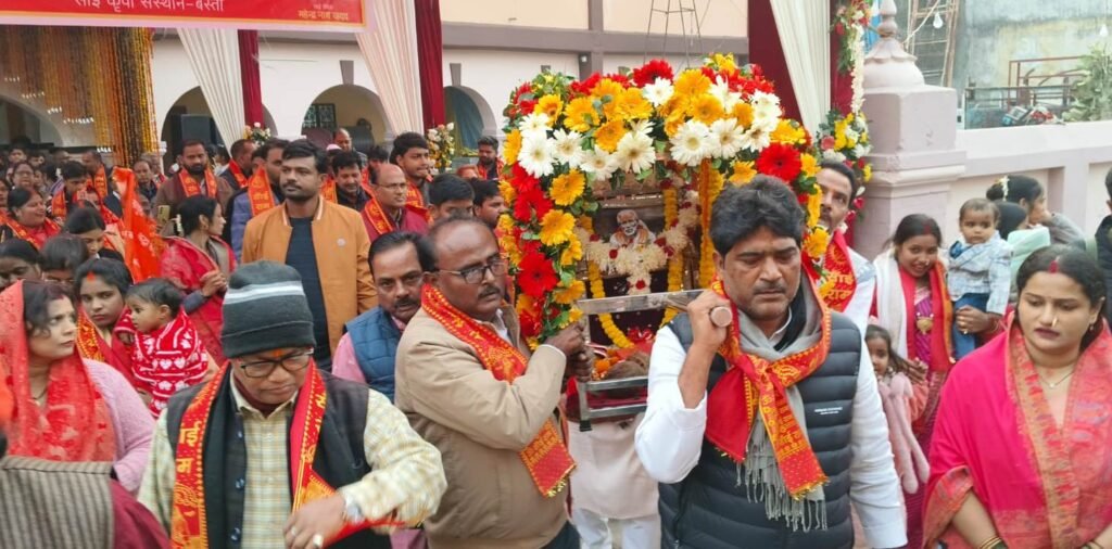 बस्ती। गांधीनगर स्थित गौरीदत्त धर्मशाले मे गुरूवार को सांई कृपा संस्थान की ओर से तीन दिवसीय संगीतमयी सांई कथा का शुभारम्भ हुआ। बाराबंकी से पधारे प्रख्यात कथावाचक उमाशंकर जी महराज के श्रीमुख से श्रद्धालुओं ने देर रात तक कथा का रसपान किया। प्रसाद वितरण के साथ पहले दिन की कथा को विश्राम हुआ। इससे पहले गौरीदत्त धर्मशाले से भव्य सांई पालकी निकाली गयी जो शहर का भ्रमण कर कथास्थल पहुंची। सदर विधायक महेन्द्रनाथ यादव, संतकुमार नंदन, डा. प्रकाश श्रीवास्तव, मनोज कुमार श्रीवास्तव, रमेशचन्द्र श्रीवास्तव, अशोक श्रीवास्तव, राजेश उर्फ दीपू सहित तमाम गणमान्यों ने पालकी को कंधा दिया।