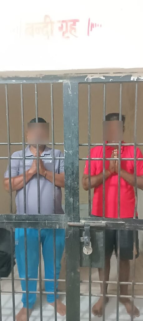 सूचना मिलते ही थानाध्यक्ष मुखबिर द्वारा बताये गये स्थान पर पहुंच कर दो लोगों को गिरफ्तार किया गया। नाम व पता पूछने पर अपने नाम मुकेश कुमार निवासी एत्मादपुर मदरा बमरौली कटारा तथा दूसरे ने अपना नाम रामसेवक निवासी महुआखेड़ा ताजगंज बताया। तलाशी लेने पर 40 पौआ देशी शराब और 1600 रुपए बरामद किए गए।