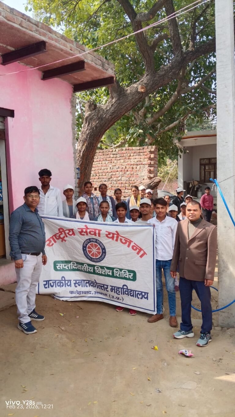 फतेहाबाद/आगरा: फतेहाबाद स्थित राजकीय स्नातकोत्तर महाविद्यालय के राष्ट्रीय सेवा योजना (NSS) के सात दिवसीय विशेष शिविर के तीसरे दिन, 23 फरवरी 2026 को अभिग्रहित ग्राम प्रतापपुर में विभिन्न कार्यक्रमों का आयोजन किया गया।