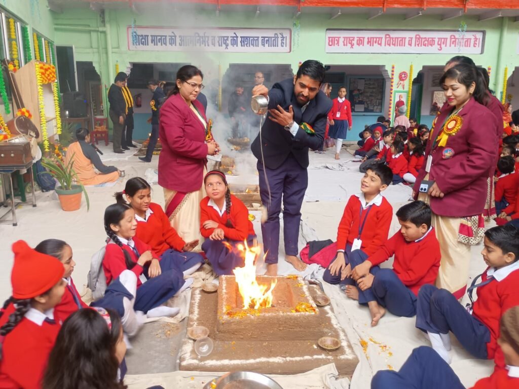 इस पावन अवसर पर विद्यालय में 60 नवीन बच्चों का विधिवत विद्यारंभ संस्कार भी संपन्न कराया गया। कार्यक्रम में विद्यालय के आचार्य परिवार के साथ प्रबंध समिति के सदस्य एवं अभिभावक बड़ी संख्या में उपस्थित रहे और उत्साहपूर्वक सहभागिता की।