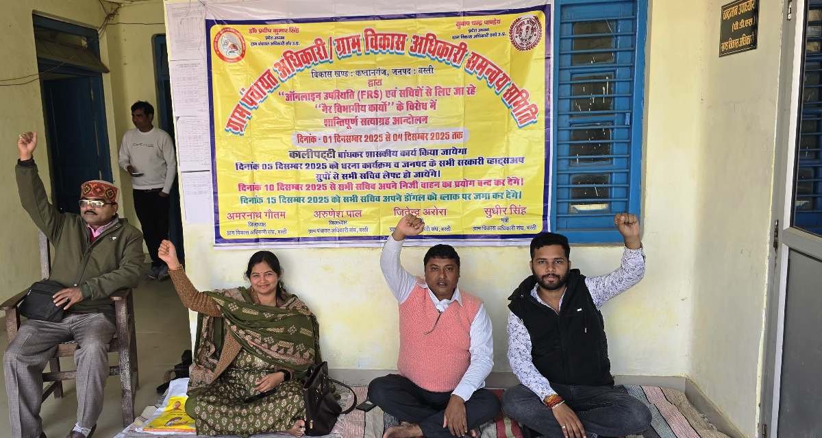 बस्ती। ग्राम पंचायत अधिकारी व ग्राम विकास अधिकारी समन्वय समिति का आंदोलन शुक्रवार को भी जारी रहा। कप्तानगंज ब्लॉकं पर ग्राम सचिवों ने काली पट्टी बांधकर काम किया और दोपहर में कुछ समय के लिए सांकेतिक प्रदर्शन कर अधिकारियों को ज्ञापन सौंपा। ज्ञापन में कहा कि उनका काम फील्ड का है। ऐसे में ऑनलाइन हाजिरी से उनका काम प्रभावित होगा। इसके साथ ही उन्होंने अन्य विभागों के काम से ग्राम सचिवों को मुक्त करने की भी मांग रखा। ग्राम पंचायत अधिकारी व ग्राम विकास अधिकारी संयुक्त समिति के पदाधिकारी अरुणेश पाल व अमरनाथ गौतम ने बताया कि मांगों को लेकर ब्लॉकों पर धरना दिया जा रहा है।
