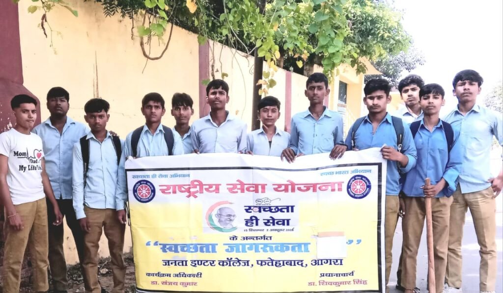 फतेहाबाद/आगरा: गुरुवार को राष्ट्रीय सेवा योजना इकाई, जनता इंटर कॉलेज फतेहाबाद आगरा में स्वयंसेवकों के द्वारा “स्वच्छता पखवाड़े” के अवसर पर एक स्वच्छता कार्यक्रम का आयोजन किया गया। जिसमें स्वयंसेवकों ने स्वच्छता-श्रमदान किया। जिसमें स्वयंसेवकों की कई टोलियों द्वारा कॉलेज के मुख्य द्वार पर बाउंड्री वॉल के आसपास, व स्वयंसेवकाओं ने विद्यालय परिसर के अंदर वाटिका में साफ सफाई का कार्य किया।
