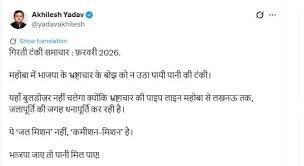 सियासी बवाल बढ़ता जा रहा है। सपा अध्यक्ष अखिलेश यादव ने X पर पोस्ट कर तीखा हमला बोला: “महोबा में भाजपा के भ्रष्टाचार के बोझ को पानी की टंकी नहीं उठा पाई। यहां बुलडोजर नहीं चलेगा क्योंकि भ्रष्टाचार की पाइपलाइन महोबा से लखनऊ तक बिछी है। यह ‘जल मिशन’ नहीं, ‘कमीशन-मिशन’ है। भाजपा जाए तो पानी मिल पाएगा!” उनका यह पोस्ट हजारों लाइक्स और शेयर हो चुका है।