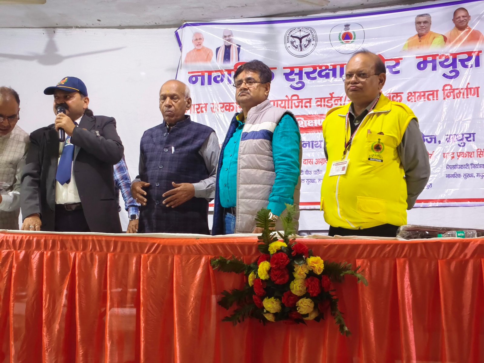 मथुरा। उत्तर प्रदेश सरकार के निर्देशन में नागरिक सुरक्षा कोर (सिविल डिफेंस) का साप्ताहिक प्रशिक्षण शिविर मथुरा के बाबू शिवनाथ अग्रवाल कॉलेज में सफलतापूर्वक संपन्न हुआ। शिविर में बड़ी संख्या में युवाओं ने उत्साहपूर्वक प्रतिभाग किया।यह प्रशिक्षण शिविर 17 फरवरी से 23 फरवरी तक बीएसए कॉलेज मथुरा के परिसर में आयोजित किया गया। शिविर के दौरान प्रशिक्षकों द्वारा प्रतिभागियों को आपात स्थिति एवं आपदाओं के दौरान बचाव कार्य,जनसमुदाय की सुरक्षा, प्राथमिक उपचार, राहत प्रबंधन एवं जनहानि को कम करने के उपायों का व्यावहारिक प्रशिक्षण दिया गया।प्रशिक्षण में सिविल डिफेंस की स्थापना,उद्देश्य एवं निस्वार्थ सेवा भाव से किए जाने वाले कार्यों की विस्तृत जानकारी प्रदान की गई।शिविर में लगभग 180 महिला एवं पुरुष प्रतिभागियों ने भाग लिया।