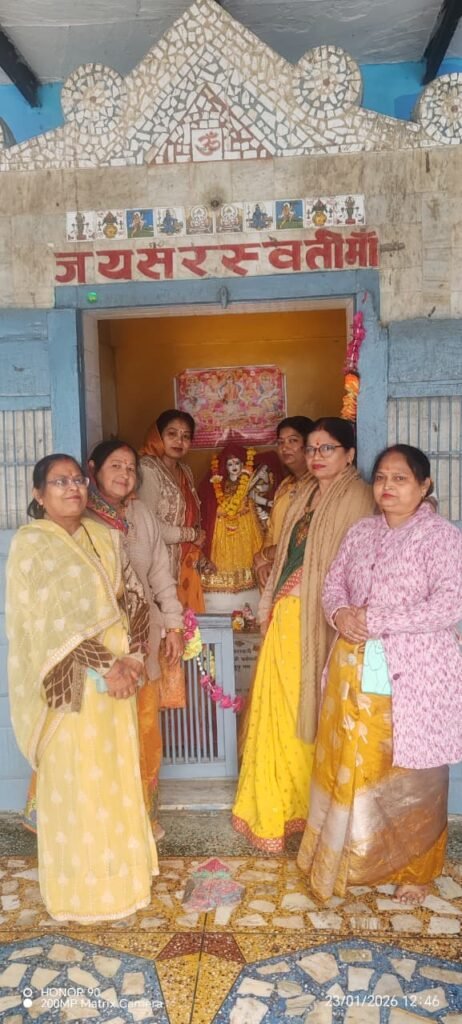 फतेहाबाद/आगराl मां सरस्वती की पूजा अर्चना के साथ किया बसंत ऋतु का स्वागत। माथुरवैश्य महिला मंडल उत्तर क्षेत्र फतेहाबाद की बहनों ने बसंत पंचमी उत्सव श्रीमती रतन देवी कान्वेंट स्कूल फतेहाबाद में मनाया सभी बहनों ने एक दूसरे को चंदन का टीका लगाया व विद्यालय के छात्र छात्राओं को नमकीन व बिस्किट के पैकट वितरित किये l